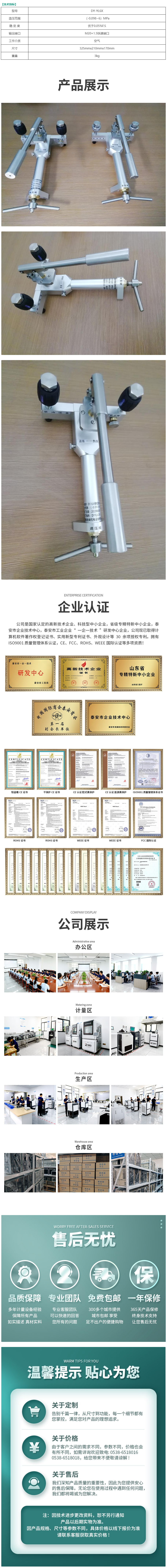 The DY-YL6X Portable Manual Pressure Source (0~6MPA) features an open, transparent integrated design for micro and medium pressure, offering simple operation, smooth pressure adjustment, fine tuning, easy maintenance, and low leakage. Its portable structure greatly enhances efficiency in calibration work. It is mainly used to provide pressure for on-site or laboratory calibration of pressure (differential pressure) transmitters, precision pressure gauges, and other pressure measuring instruments.