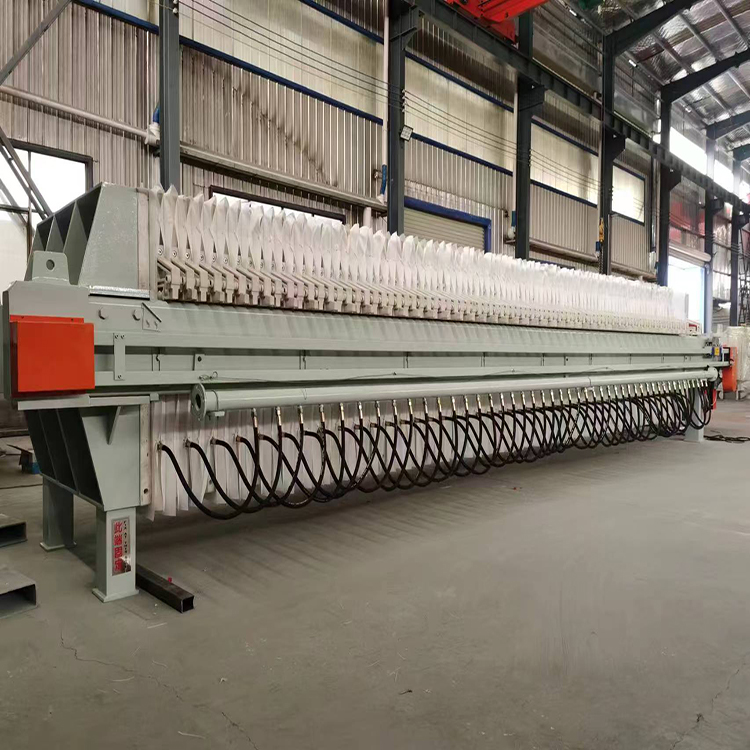Diaphragm pressure filter is a high-efficiency solid-liquid separation equipment that achieves material dehydration through the principle of pressure filtration. Its core structure consists of diaphragm filter plates, a frame, and a hydraulic system. During operation, it uses high pressure (such as 12 MPa) to squeeze the material between the filter plates, allowing the liquid to pass through the filter cloth and drain out, while the solid is retained to form a filter cake.