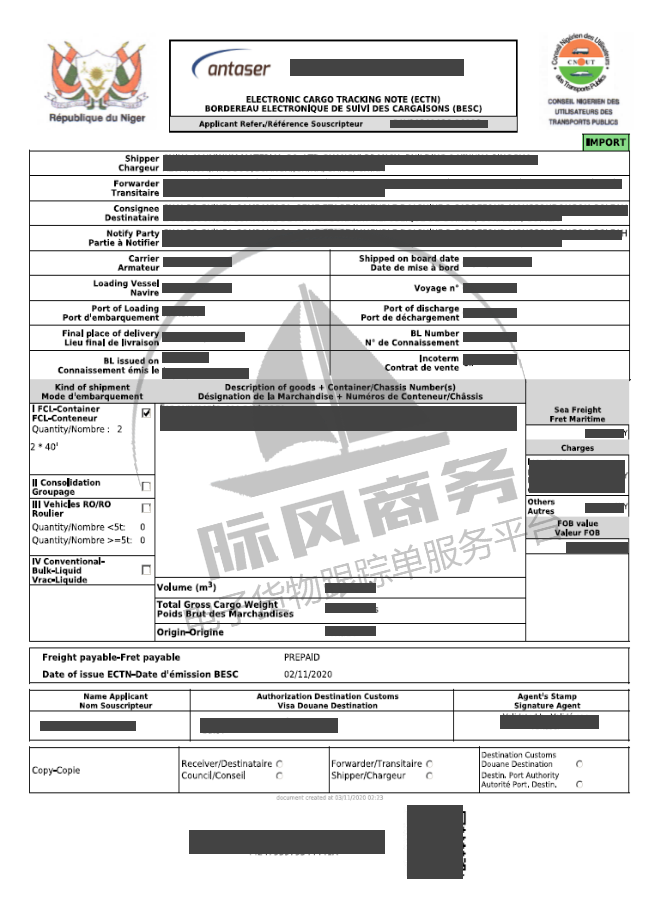 • The ECTN certificate must be processed before the shipping company issues the original bill of lading, and the certificate must be completed before arrival at port.
