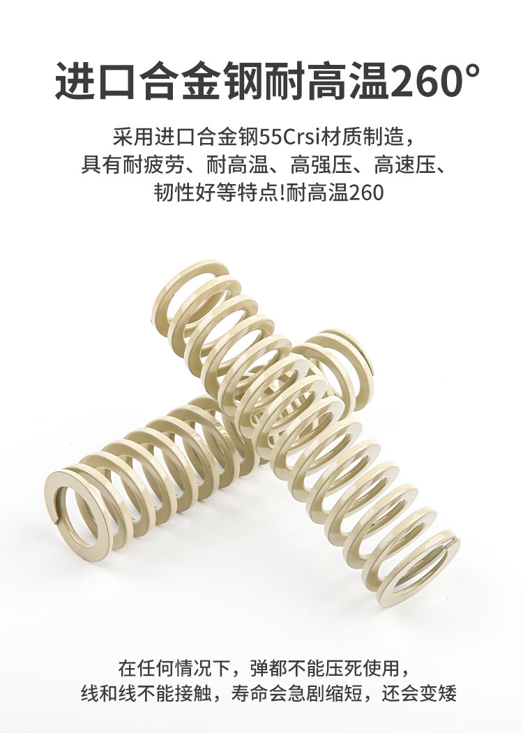 慈溪市顶立弹簧有限公司发布的进口合金钢弹簧SWR白色大压缩量强力耐高温高强度矩形模具压簧图集库