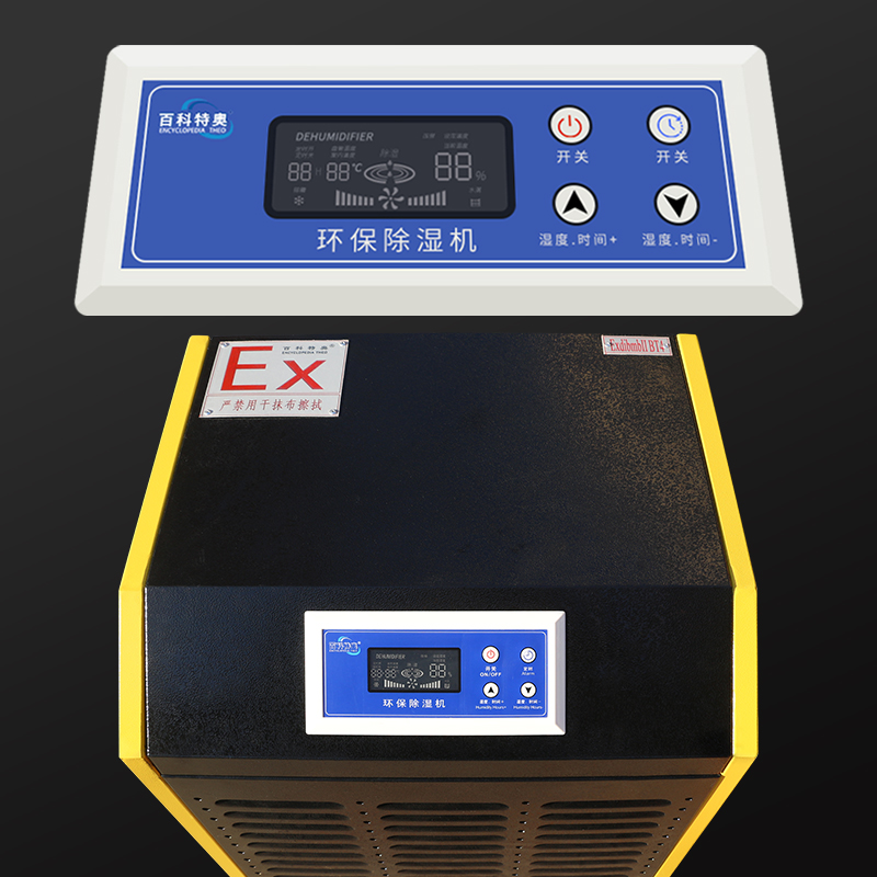 Explosion-proof dehumidifiers have the same appearance and usage as conventional dehumidifiers. These dehumidifiers undergo special technical processing and can be widely used in 1/2 area explosion-proof classifications. They are designed for special dehumidification needs in environments where flammable gases, vapors, and air mixtures (IA, IB level, T1~T4 groups) may form explosive hazards, such as in scientific research, oil, chemical, manufacturing, and factory settings. They offer multiple functions including dehumidification, heating, and ventilation. The百科特奥brand explosion-proof dehumidifiers are aesthetically pleasing, feature innovative design, and are easy to install and maintain. They come with brand-name compressors, microcomputer control, low noise, humidity display, and are straightforward and easy to operate, offering superior performance. Our company can also design and produce according to customer requirements.