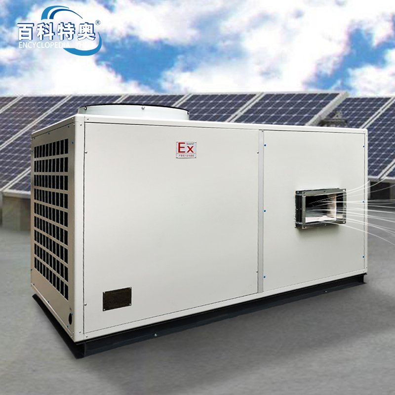 Tianjin Explosion-Proof Air Conditioners - BLF-28 Explosion-Proof Air Conditioners for Paint Storage, Class II CT4; Ducted Air Conditioning Units; Bocoteo New Air Outdoor Integrated Explosion-Proof Air Conditioners are all-liquid-cooled explosion-proof heating and cooling air treatment systems. The entire explosion-proof air conditioning unit system consists only of the outdoor main unit and indoor air supply ducts, without the need for pumps, cooling towers, fan coils, or condensate drainage pipes. The units can be placed on rooftops or outdoor open spaces, eliminating the need for machine rooms, thus saving on initial investment. The units do not require secondary refrigerants, ensuring high system efficiency. Additionally, this series of explosion-proof air conditioning units can be configured with different functional sections according to customer needs, enabling easy implementation of air purification, dehumidification, humidification, cooling, heating, and新风 volume control. Custom sizes and outlet sizes can be made according to customer site requirements. They are widely applicable in Zones 1 and 2 explosion-proof levels, covering industries such as scientific research, oil, chemicals, processing, and manufacturing. They are suitable for hazardous areas where IIA, IIB, IIC, T1 to T4 groups of combustible gases, vapors, and air mixtures can cause explosions. Bocoteo Explosion-Proof Air Conditioning Series - Explosion-proof marks Exdibmb II BT4, Exdibmb II CT4