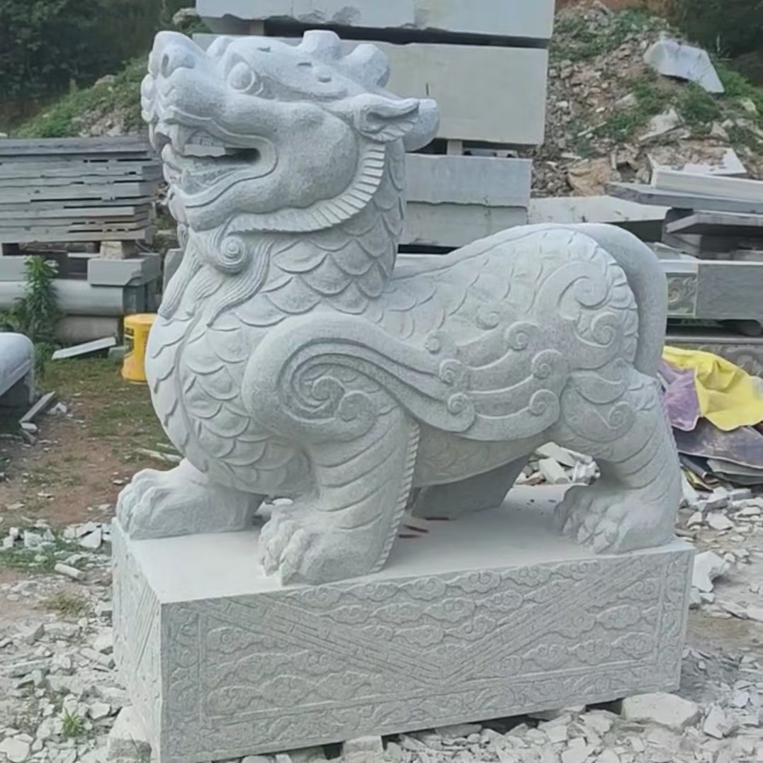 Animal sculptures are造型products that combine artistic tension with cultural significance. They carry the symbolic meanings of animals across different cultures – like the dragon symbolizing majesty, the lion representing protection, and the crane symbolizing good fortune. They also precisely portray the morphological features and dynamic charm of animals through techniques such as round sculptures, bas-reliefs, and through-cuts, blending sculpture craft with the beauty of natural creatures, offering both aesthetic appeal and cultural expression. Materials commonly used include grey stone, granite, marble, and bronze. Grey stone is ideal for showcasing a rustic, heavy texture and can finely depict the hair and textures of animals. Granite is hard and resistant to outdoor weathering, suitable for outdoor settings. Marble has a pure, warm color that highlights the delicate details of animal shapes. Bronze, with its metallic luster and historical depth, is perfect for creating grand animal figures. The production process involves conception, design, modeling, material processing, fine carving, and surface polishing. Craftsmen adjust the techniques based on the animals' characteristics and the material properties to ensure the sculptures are lifelike and detailed. Their applications are vast, from gardens and landscapes, complementing scenery and greenery to create vibrant atmospheres, such as stone lions in courtyards or stone carvings of koi fish by ponds. They can be used in urban squares or parks as public art installations to enrich spatial layers. They can also be placed around temples or ancient buildings to convey auspicious meanings and cultural heritage. Additionally, they can be used in home gardens as decorative pieces to elevate the space's style. With high-quality materials and exquisite craftsmanship, animal sculptures offer advantages such as resistance to weathering, wear, and a long service life. They can serve as cultural symbols to convey good wishes and as artistic decorations to illuminate various spaces, making them classic products that combine artistic value and practical function.