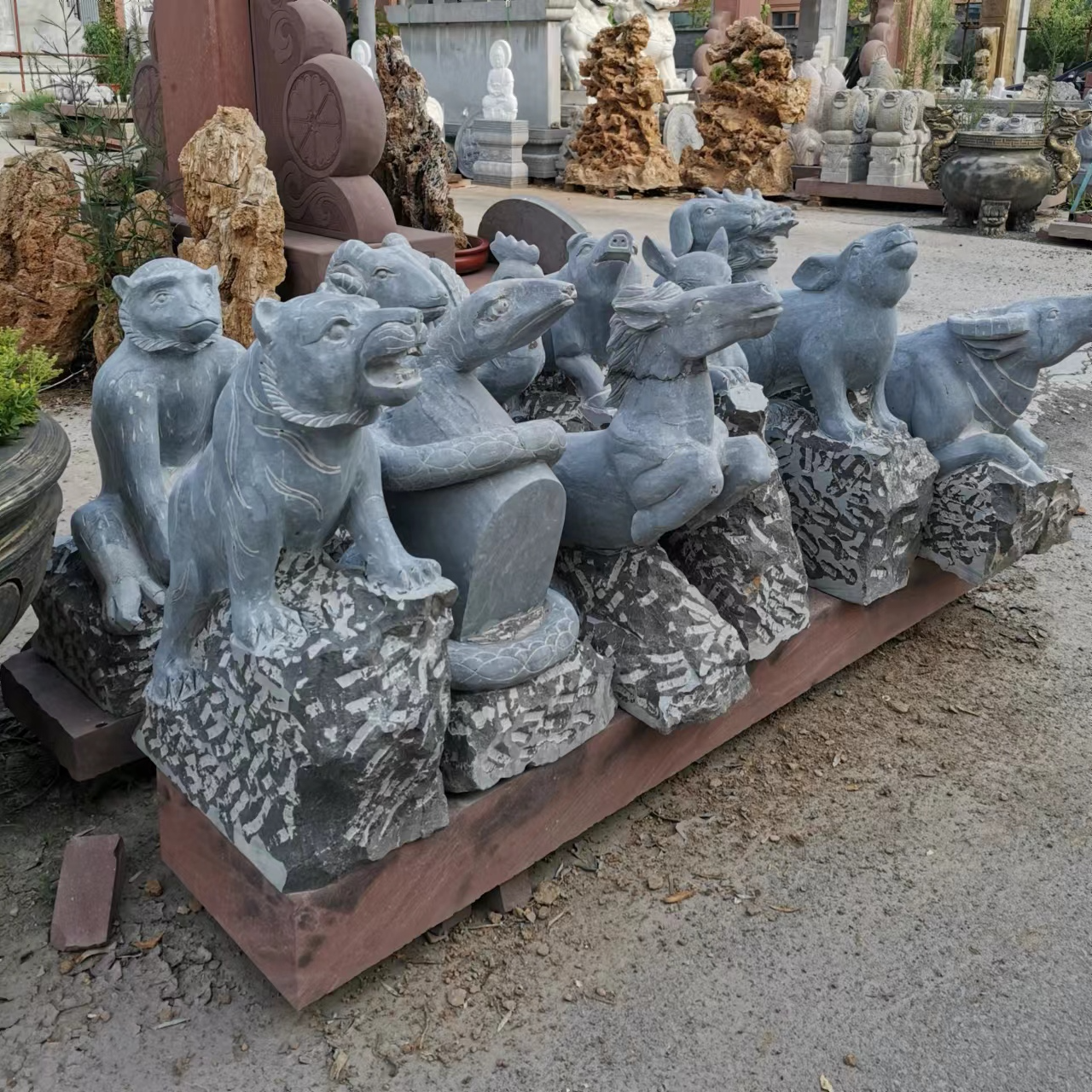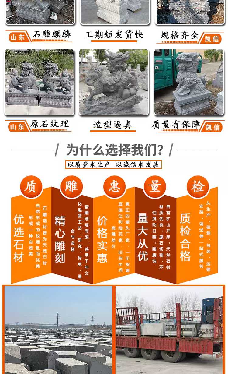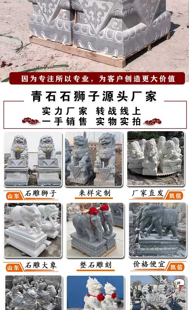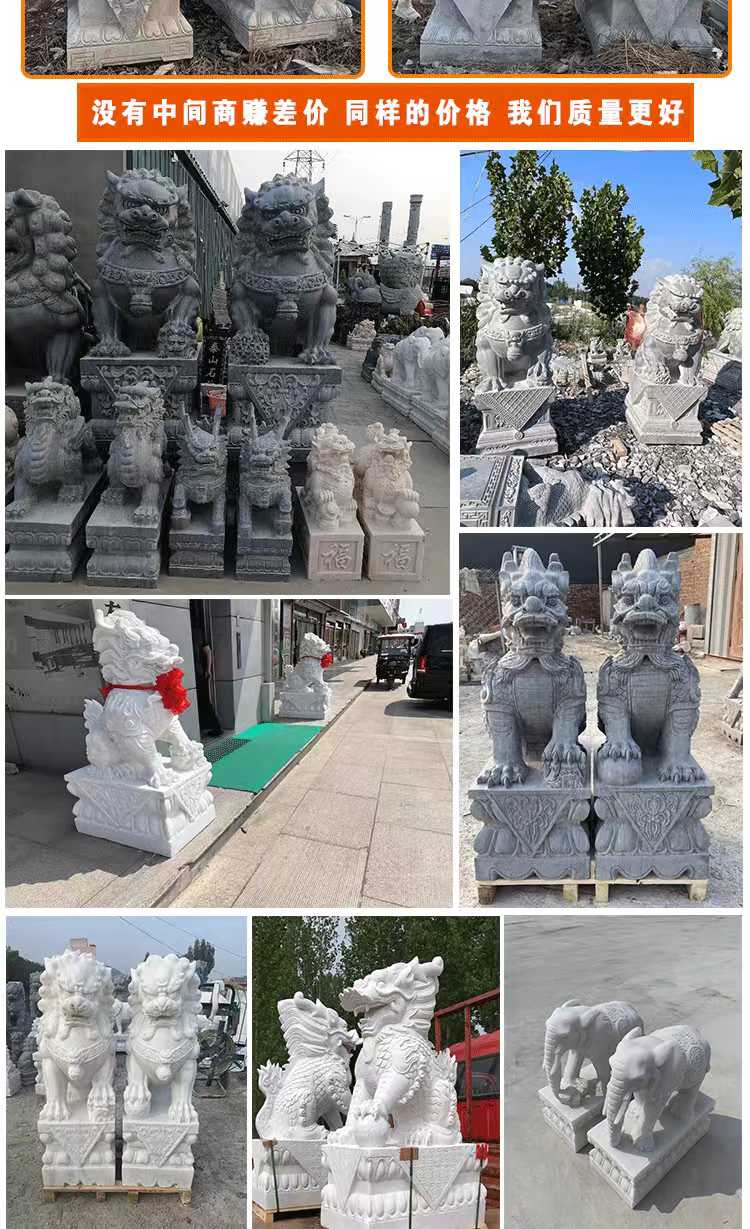 Animal sculptures are artistic creations that blend cultural significance with symbolic meaning. They embody the symbolic significance of animals across different cultures—such as the dragon representing majesty, the lion symbolizing protection, and the crane signifying good fortune—and precisely capture the morphological features and dynamic essence of animals through techniques like round sculpture, bas-relief, and openwork. These sculptures seamlessly integrate the art of sculpture with the beauty of nature, offering both aesthetic appeal and cultural expression. Materials commonly used include bluestone, granite, marble, and bronze. Bluestone is ideal for showcasing an ancient, heavy texture and can finely depict the hair and texture of animals. Granite is hard and resistant to outdoor erosion, making it suitable for outdoor settings. Marble has a pure and soft color that highlights the delicate feel of animal shapes. Bronze, with its metallic luster and historical depth, is perfect for creating grand animal figures. The production process involves conceptualization, design, model making, material processing, fine carving, and surface polishing. Craftsmen adjust techniques based on the animal's characteristics and material properties to ensure lifelike and natural sculptures. Their applications are vast, from gardens and landscapes to enhance dynamic atmospheres, like stone lions in courtyards or stone carvings of koi fish by ponds. They can also be used in urban squares or parks as public art installations to enrich spatial layers. Additionally, they can be placed around temples or ancient buildings to convey auspicious meanings and cultural heritage. They can also be used in home gardens as decorative pieces to elevate the space's style. With high-quality materials and exquisite craftsmanship, animal sculptures offer advantages such as resistance to weathering, wear, and a long service life. They can serve as cultural symbols to convey auspicious meanings and as artistic decorations to illuminate various spaces, making them classic products that combine artistic value and practical functionality.