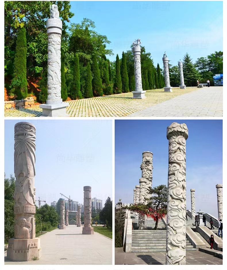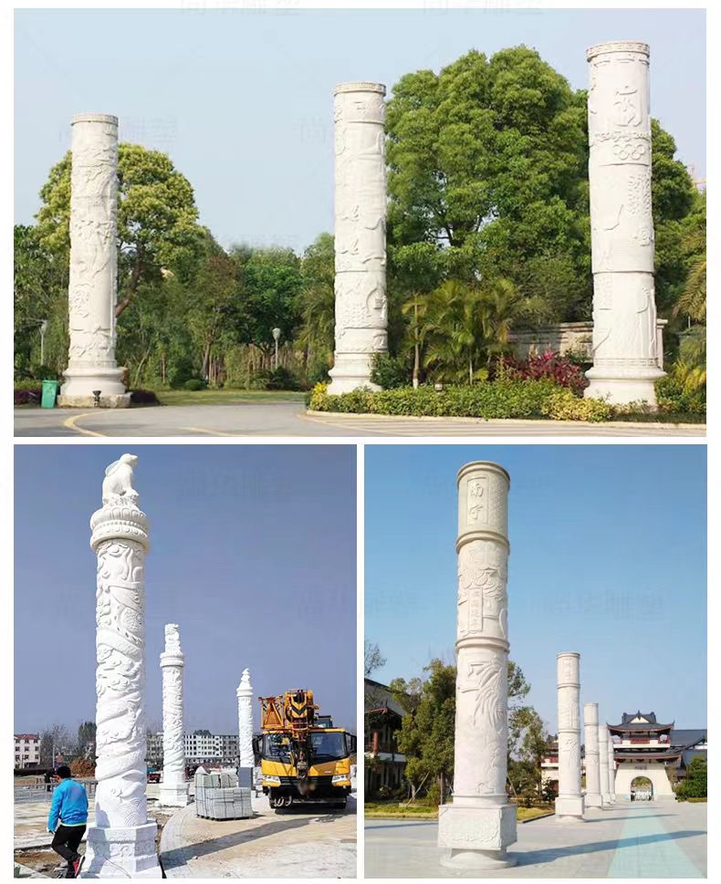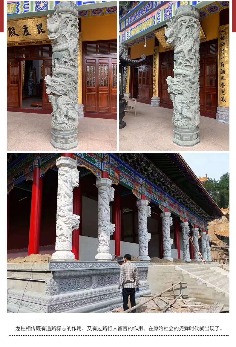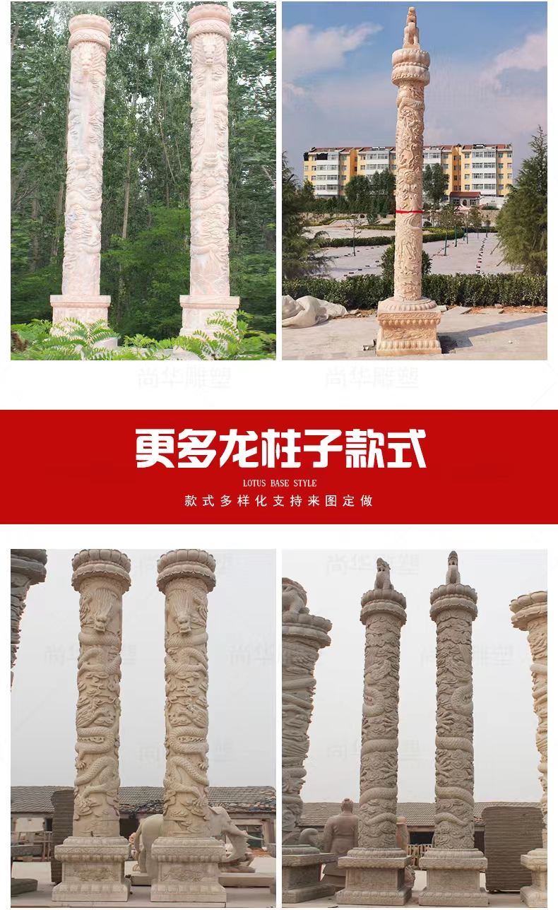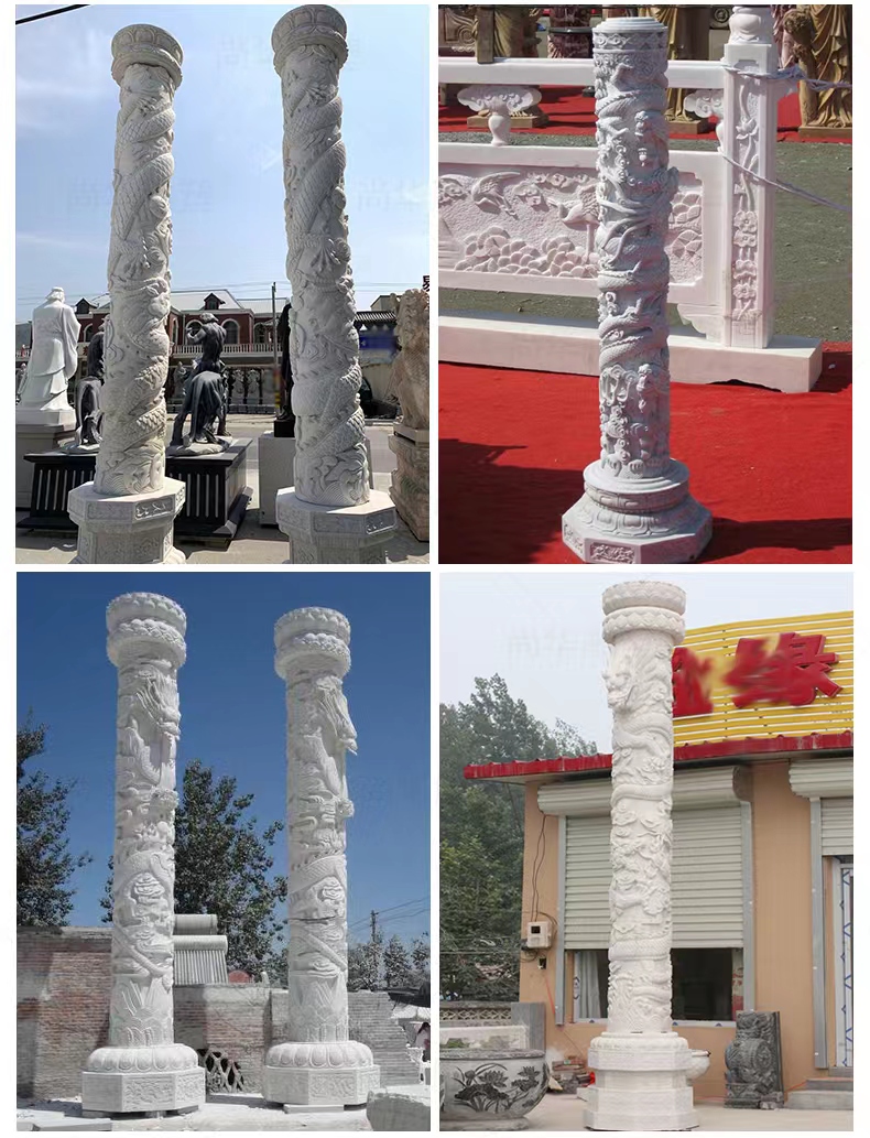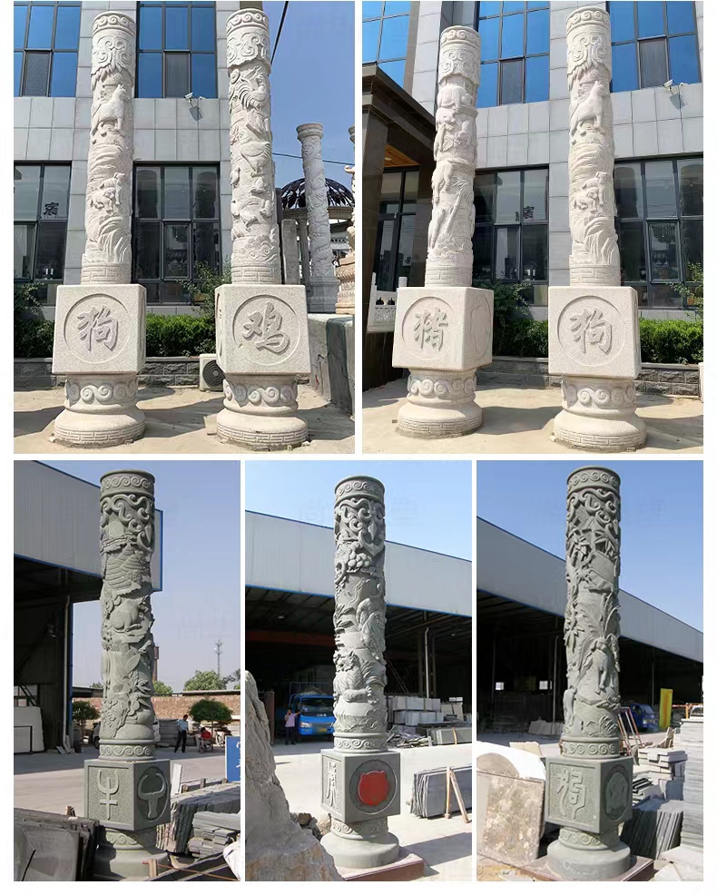 Jining Dahui Stone Industry, rooted in Jiaxiang, the "Hometown of Stone Carving," has passed down the 1,000-year-old craftsmanship to create exquisite stone dragon columns, a perfect blend of culture and art. Selected high-quality stone materials such as Shandong Tianqing Stone, known for their resistance to weathering and sturdy texture, are meticulously processed through the entire process of selecting raw materials, shaping rough drafts, fine carving, and polishing installation, ensuring both structural stability and artistic tension. The dragon patterns on the column follow the ancient method of "The Dragon Divided into Nine Similarities," presented with diverse techniques like bas-relief and openwork, showcasing classic styles such as a single dragon coiling around the column and two dragons playing with a pearl. The dragon's head is majestic, the body strong, and the scales and whiskers are finely detailed. Accompanied by auspicious patterns like auspicious clouds and lotus flowers, these columns not only embody the traditional connotations of imperial dignity and sacred protection but also carry the beautiful wishes for blessings and longevity. Whether in temples, ancestral halls, squares, gardens, or memorials, these dragon columns illuminate the space with their grandeur, becoming carriers of national cultural memory and heritage.