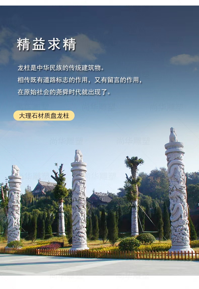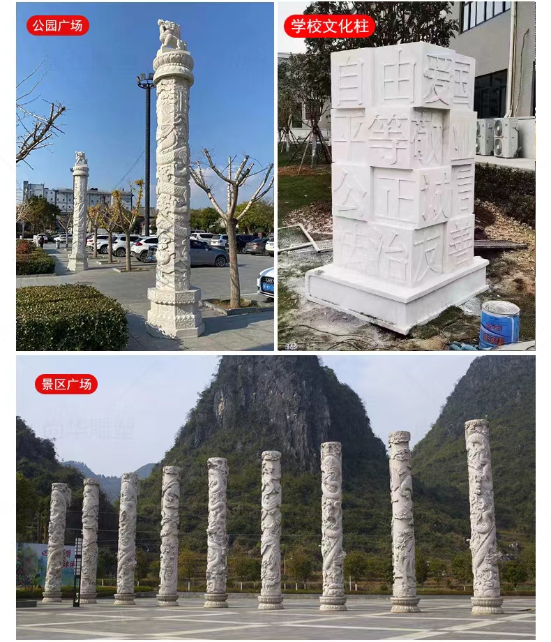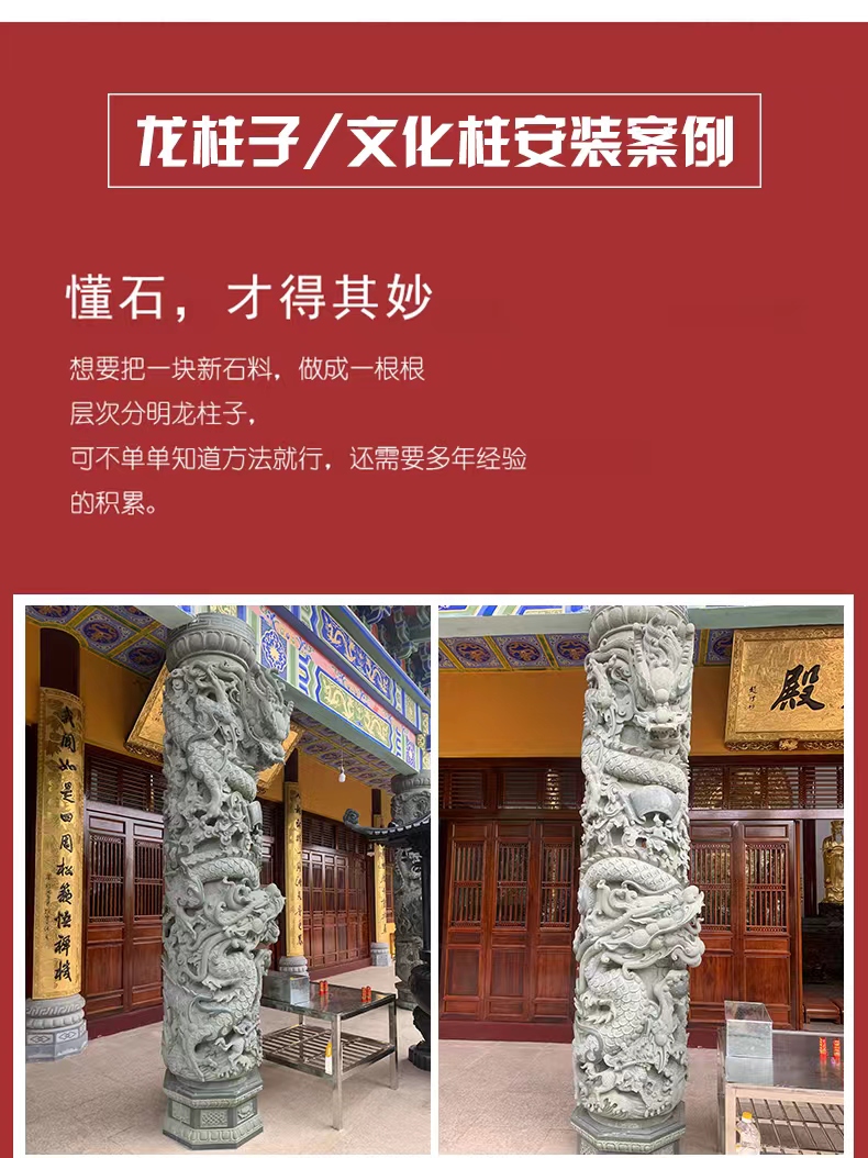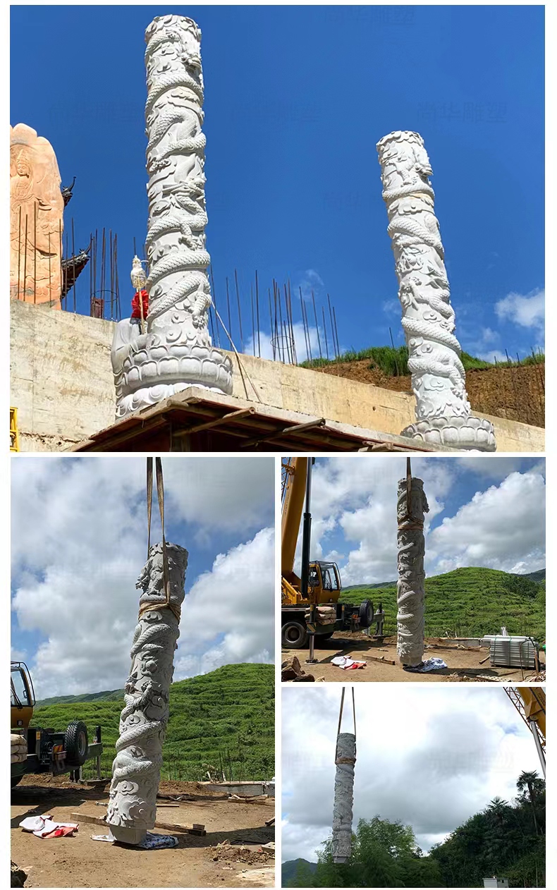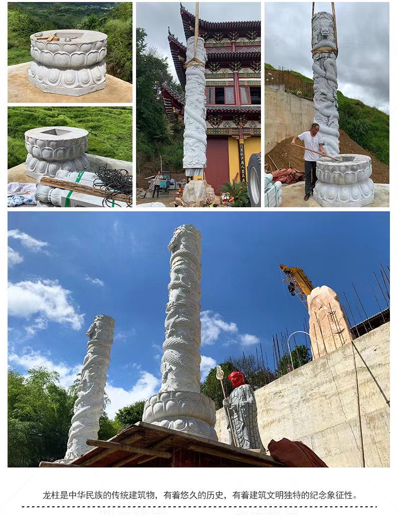Jining Dahui Stone Industry, rooted in Jiaxiang, the "Hometown of Stone Carving," has passed down the 1,000-year-old craftsmanship to create exquisite stone dragon columns, a perfect blend of culture and art. Selected high-quality stone materials such as Shandong Tianqing Stone, known for their resistance to weathering and sturdy texture, are meticulously processed through the entire process of selecting raw materials, shaping rough drafts, fine carving, and polishing installation, ensuring both structural stability and artistic tension. The dragon patterns on the column follow the ancient method of "The Dragon Divided into Nine Similarities," presented with diverse techniques like bas-relief and openwork, showcasing classic styles such as a single dragon coiling around the column and two dragons playing with a pearl. The dragon's head is majestic, the body strong, and the scales and whiskers are finely detailed. Accompanied by auspicious patterns like auspicious clouds and lotus flowers, these columns not only embody the traditional connotations of imperial dignity and sacred protection but also carry the beautiful wishes for blessings and longevity. Whether in temples, ancestral halls, squares, gardens, or memorials, these dragon columns illuminate the space with their grandeur, becoming carriers of national cultural memory and heritage.