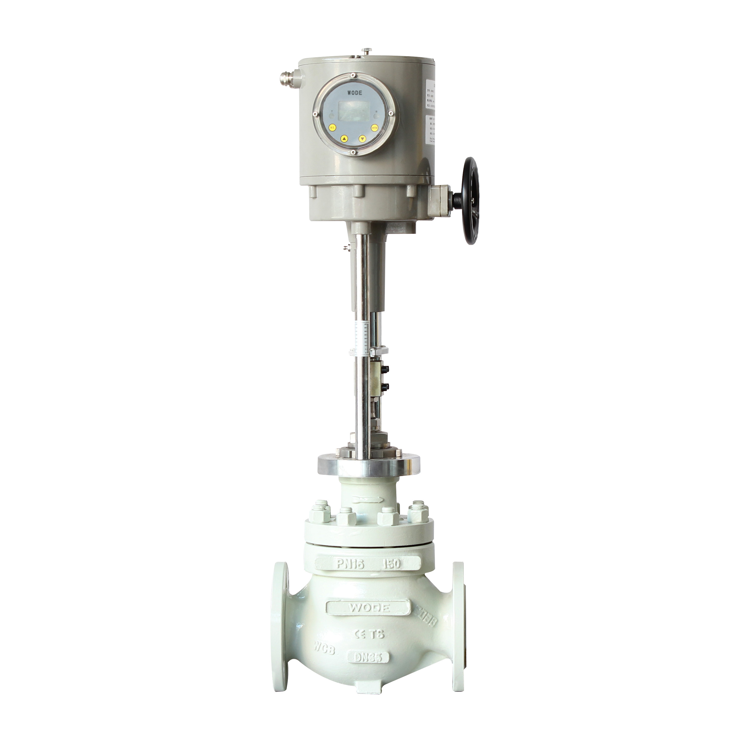Germany's VorwerkWODEOur imported electric pressure regulating valve is a pressure balancing type regulating valve, featuring a cage-type sleeve guide and double-sealing structure. It is equipped with an electric actuator, which is an integrated electronic structure, containing a servo amplifier and an input control signal.(4~20mADCOr1~5VDC)The system can control the valve opening by simply connecting to a power source, converting the current signal into a corresponding linear displacement to automatically regulate the valve opening for continuous pressure adjustment. The overall control system features stable operation, large allowable pressure difference, precise flow characteristics, and low noise. It is particularly suitable for applications that permit minimal leakage and have a significant pressure difference before and after the valve.
