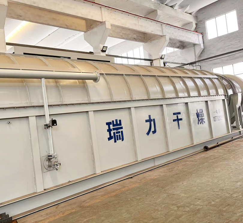 After wet material is introduced into the dryer from one end, it is evenly distributed and dispersed within the drum by the scraper blades, and comes into full contact with the hot air flow (either concurrent or countercurrent), accelerating the drying mass transfer and driving force. During the drying process, the material, under the action of inclined scraper blades and hot air flow, can be controlled to move to the other end of the dryer and discharged through the star-shaped discharge valve as finished product.
