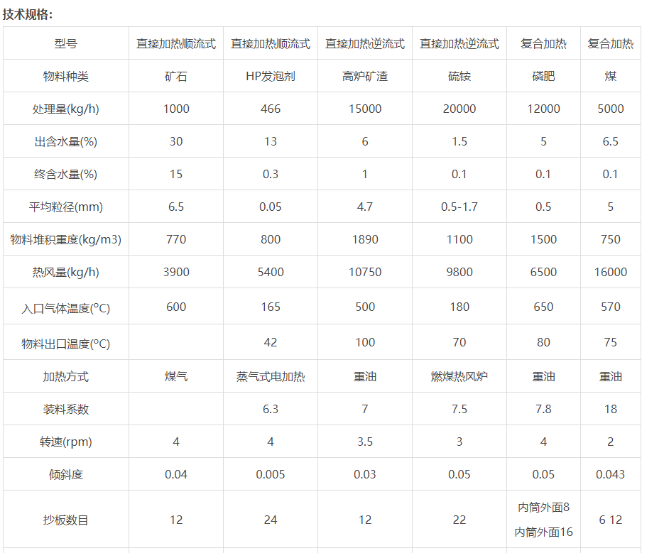 1. Large-grained materials for industries such as chemicals, mining, and metallurgy, including heavy bulk materials for drying, such as ore, blast furnace slag, coal, metal powders, phosphate fertilizer, and ammonium sulfate.