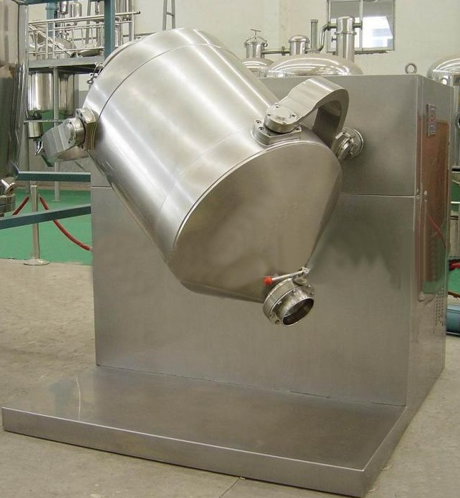 Structure: The machine is composed of the base, transmission system, electrical control system, multi-directional motion mechanism, and mixing drum. The mixing drum, which comes into direct contact with materials, is made of high-quality stainless steel and both the inner and outer walls are mirror-polished.