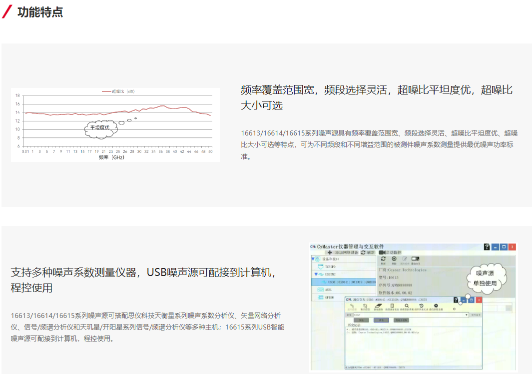 A noise source is a device capable of generating random continuous spectrum signals. An excellent noise source should possess stable output noise power and uniform power spectral density within the specified frequency band. CETC SiYi Technology Co., Ltd. can supply a variety of coaxial noise sources across the frequency range of 10MHz to 50GHz. The products include both intelligent and standard series, offering advantages such as wide frequency coverage, low standing wave ratio at the output ports, and good flatness of the output super-noise ratio.