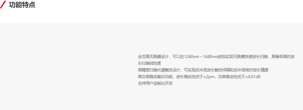 The 6317 series tunable laser sources are domestically produced high-performance Littman external cavity types with picometer-level wavelength positioning accuracy, covering a wavelength range of 1240nm to 1680nm. They offer excellent repeatability in wavelength and power output with a wide dynamic range. While performing rapid wavelength scanning, they can simultaneously output a triggering level signal with extremely high wavelength accuracy, efficiently testing the wavelength-related characteristics of photonic chips and devices in the field of optical communications, such as silicon optical chips, filters, and wavelength selectors (e.g., IL, PDL). The narrow linewidth feature, combined with the function of non-jumping mode wavelength continuous scanning, helps achieve highly ideal spatial resolution and positioning accuracy for optical frequency domain reflectometers (OFDR). The 6317 series tunable laser sources are advanced in performance and cost-effective, serving as internal core excitation sources for various high-end photonic testing instruments/systems. They can also be used as general-purpose light sources in university laboratories, corporate R&D centers, and calibration and metrology institutions, empowering researchers in the optoelectronics industry.