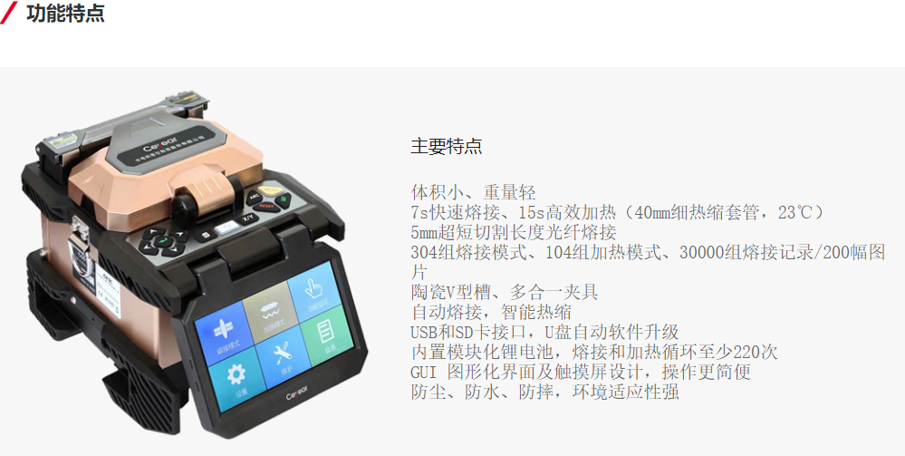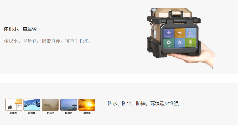 The 6481 series fiber splicing machines are primarily used for splicing and protecting various types of communication fibers, optical cables, and erbium-doped fibers. With powerful functions and ultra-low splicing loss, these machines fully meet the splicing requirements in various environments. One of the main features is their miniaturization and lightweight design; they are highly adaptable, reliable, dustproof, waterproof, and shockproof. They offer multiple splicing and heating mode parameter sets to cater to various splicing needs. High-precision ceramic V-grooves facilitate the placement of fibers, making them easier to clean and maintain. They feature bidirectional splicing functionality, a touchscreen display, and a newly designed graphical menu interface for user-friendly splicing operations. The large-capacity, removable, modular lithium-ion battery ensures reliable operation in remote areas. The environmental automatic compensation system significantly enhances the machine's ability to adapt to harsh external environmental changes, ensuring consistent low-loss splicing across different environments.