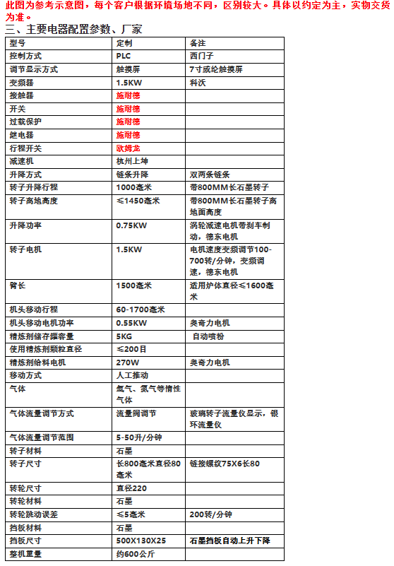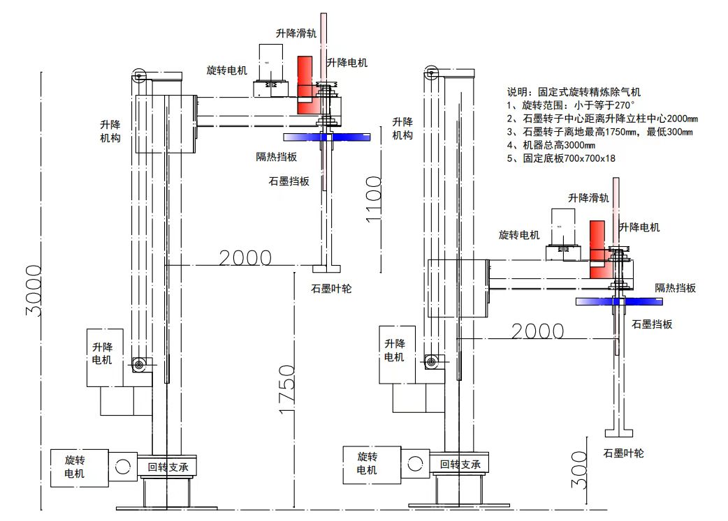 4. The graphite rotor with the turntable has a maximum height of 1650mm above the ground and a minimum height of 500mm when lowered (height can be customized according to different customers).
