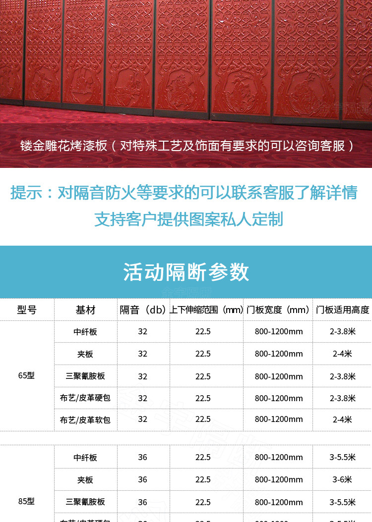 Hotel activity partition walls, folding overhead tracks, office, banquet hall, restaurant, partition insulation, mobile high partitions, manufacturer