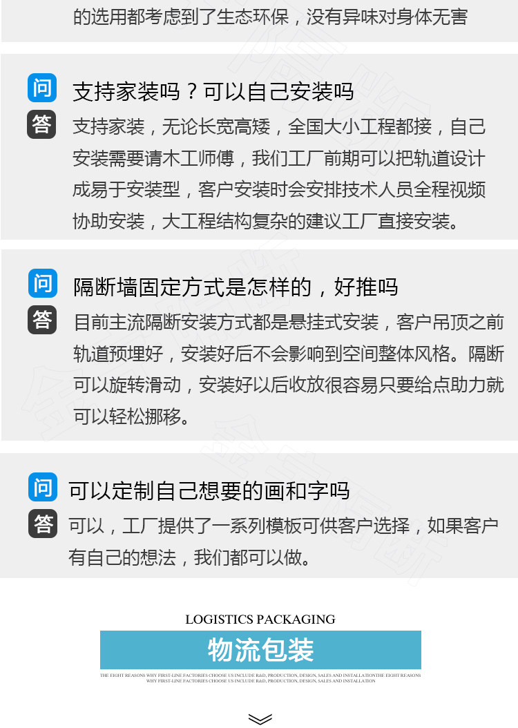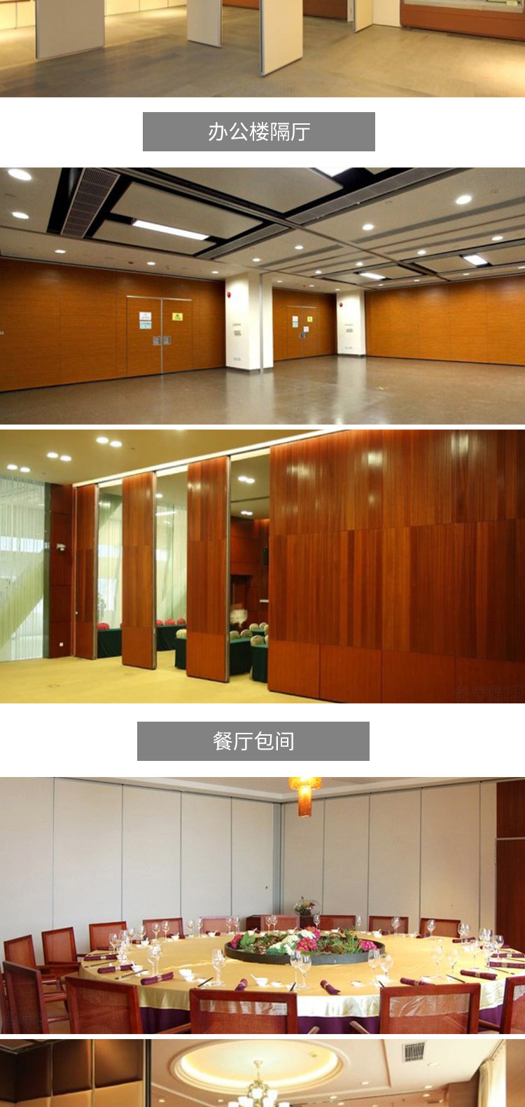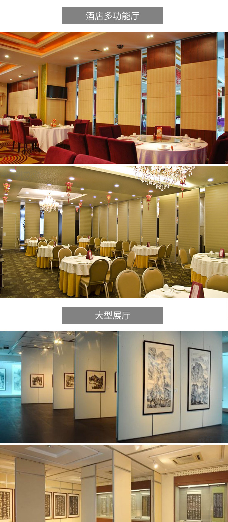Partition walls, sliding tracks for hotels, folding screens for dining rooms, room dividers, rotating and retractable artwork, high-moving partitions