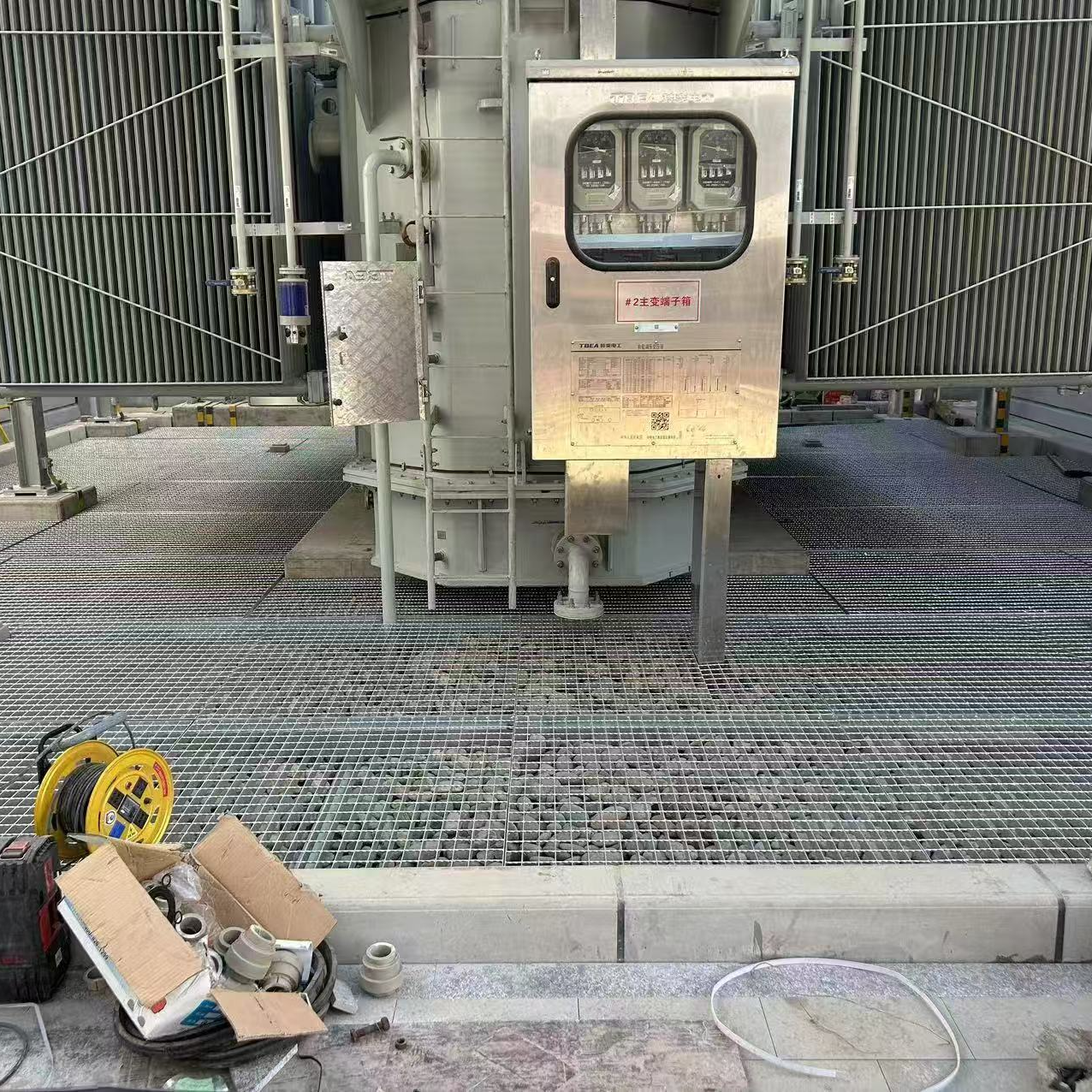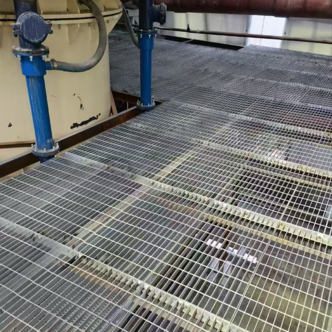 Platform uses steel gratingA grid-type building material made by welding flat steel and crossbars at right angles, with the base material being Q235 steel, and the surface typically coated with hot-dipped galvanizing to enhance rust resistance.