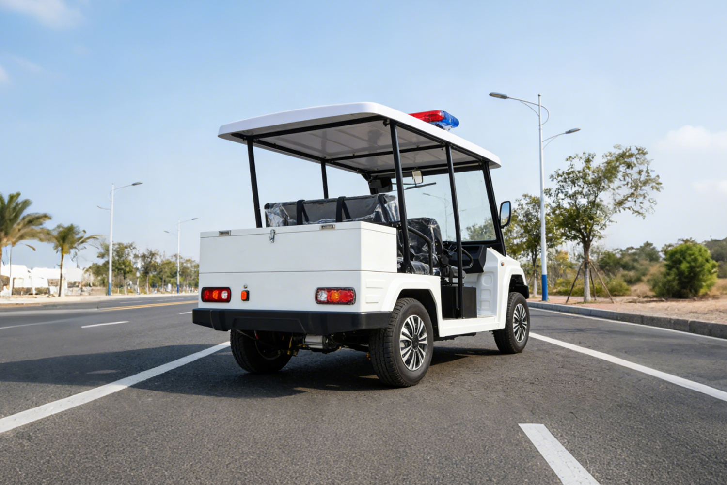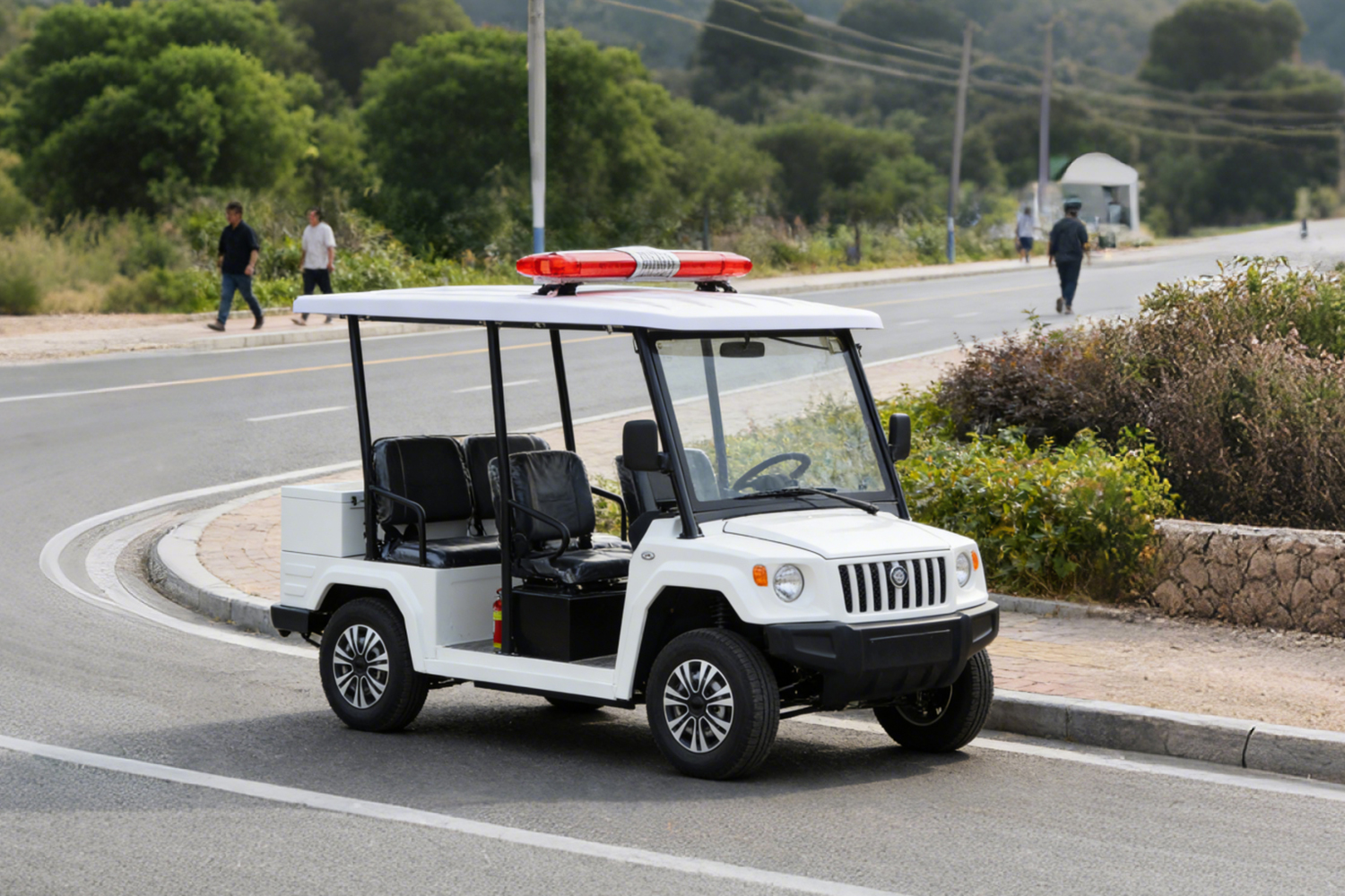 Compact body ( customizable for 2-8 seats), able to navigate narrow streets, pedestrian zones, and green belts, eliminating patrol blind spots. Low-speed stability (designed for 25-40 km/h), balancing safety and observation convenience.