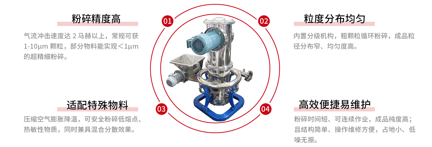 Some models achieve ultra-fine grinding at the sub-micron level (d97 ≤ 1μm).