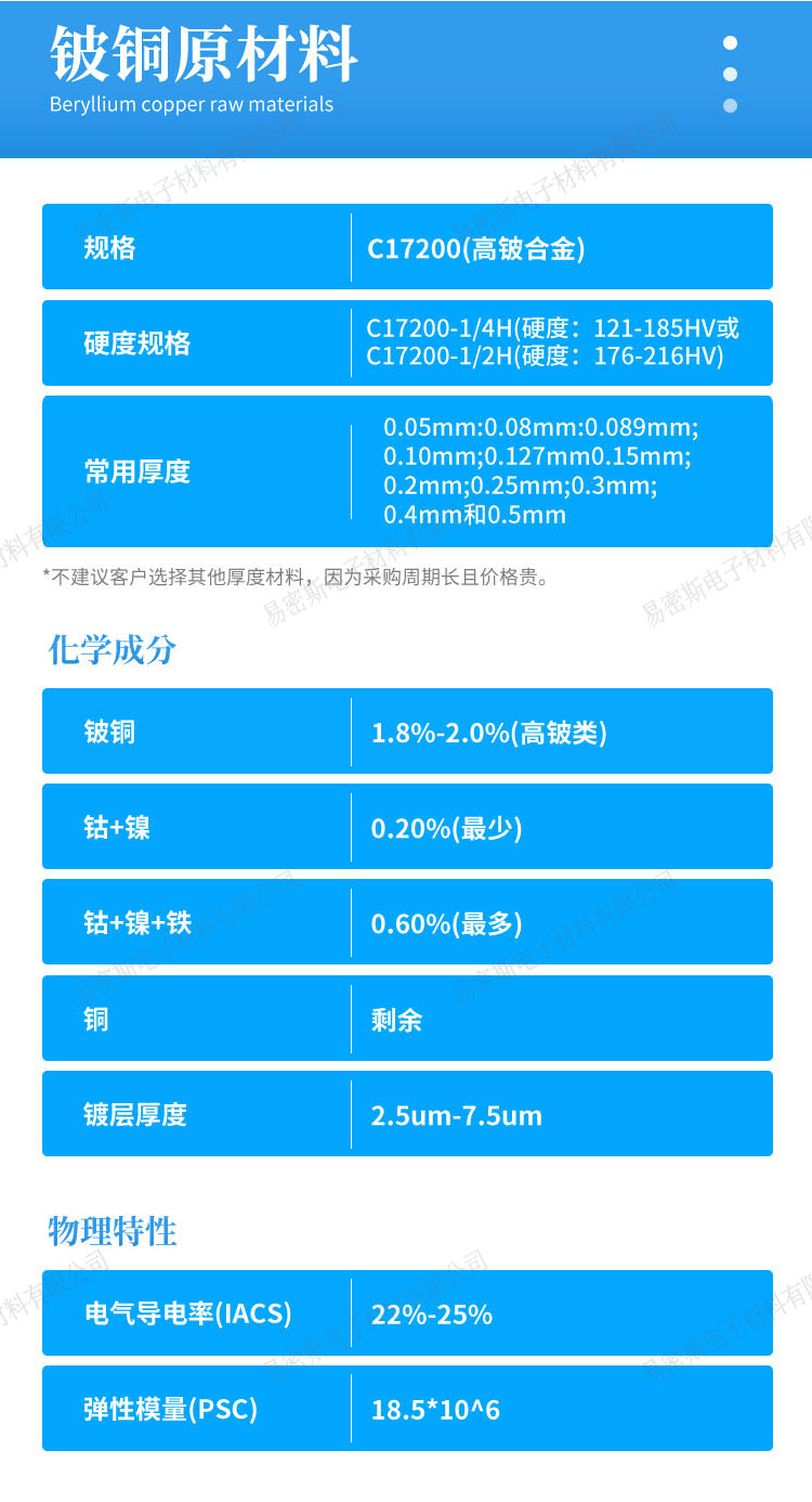 | Material | Imported C17200 Beryllium Copper | |