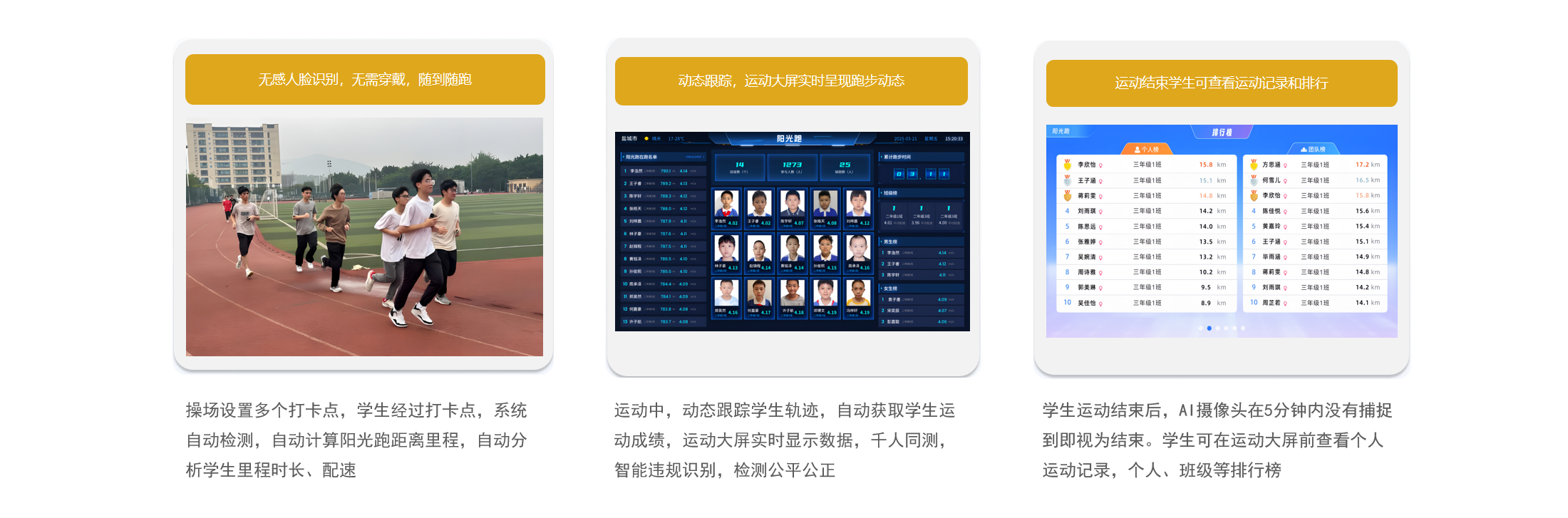 自助、无感、高效记录学生日常阳光跑活动,激发学生体育运动兴趣,提高体育智能化水平,进一步提升校园体育文化。