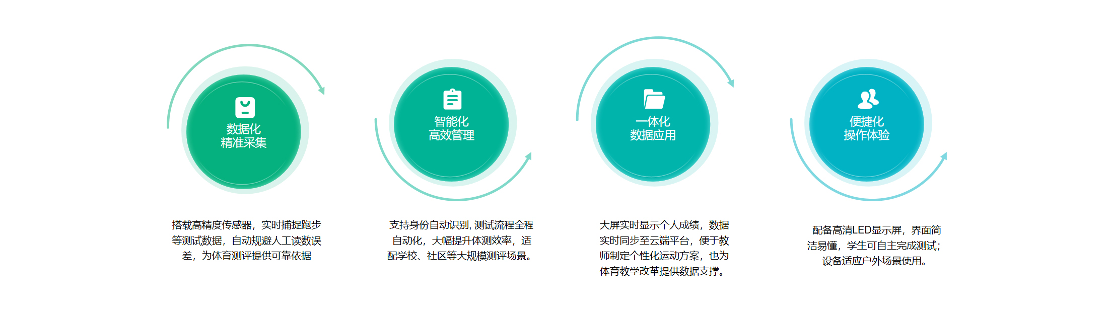 Providing intelligent sports experiences for campuses. Equipped with high-definition LED screens, the screens display real-time information such as exercise duration and rankings.