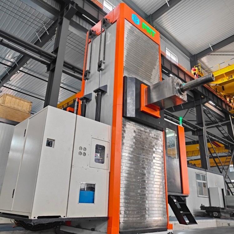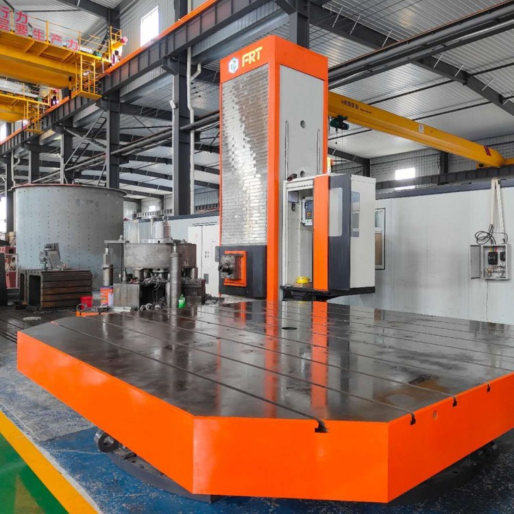 The FRT-160B features various machining capabilities, including milling, boring, drilling (drilling, reaming, tapping), and threading, as well as countersinking. It offers 8-axis simultaneous operation, boasts excellent performance, a wide processing range, and high production efficiency. It is also available with a variety of functional attachments to expand the processing range and perform drilling, reaming, boring, groove cutting, and flat milling in a single setup, further enhancing efficiency. It can mill inclined surfaces, rectangular planes, large hole ends, two-dimensional and three-dimensional surfaces, and both internal and external threads using contour control methods. The rotating table's continuous indexing feature allows for multi-angle machining of workpieces. The machine has high rigidity, precision, ease of operation, and reliability, making it the preferred processing equipment in fields such as heavy machinery, construction equipment, railway vehicles, injection molding machines, mining equipment, large electric motors, turbines, steam turbines, ships, iron and steel, military industry, nuclear power, and environmental protection. It is suitable for large component processing in various mechanical fields such as ships, new energy, aerospace, automotive, construction equipment, packaging, rail transit, and hardware and rubber, and is the optimal choice for precision machining of ultra-large and ultra-heavy components with complex structures.
