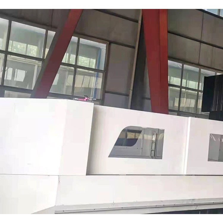 The FRTSP-6035B series machine tools feature a table-moving structure, primarily composed of the worktable, bed, sliding saddle, column, beam, sliding headstock, hydraulic system, lubrication system, pneumatic system, cooling and filtering system, chip conveyor, fixed operation panel, and electrical control system.