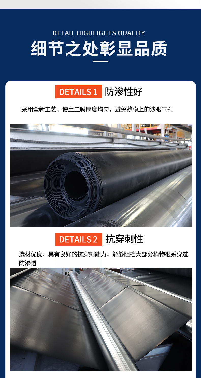 | Usage | Artificial Lake Seepage Control: Waterproofing for reservoirs, dams, rivers, canals, roadbeds, and rooftops. | |